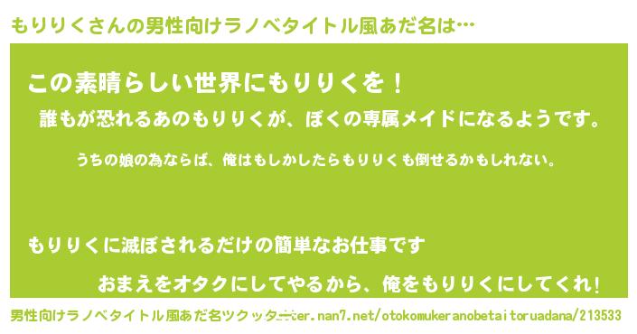 | 胡散臭い通販商品みたいなあだ名 | 『運命の人と巡り会える高級そうな絵画…その名も「もりりく」』 |