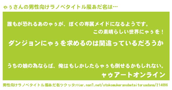 | 胡散臭い通販商品みたいなあだ名 | 『信頼と実績のネックレス…その名も「ゃぅ」』 |