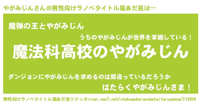 | 女子向けラノベタイトル風あだ名 | 『やがみじんアンティーク』 |