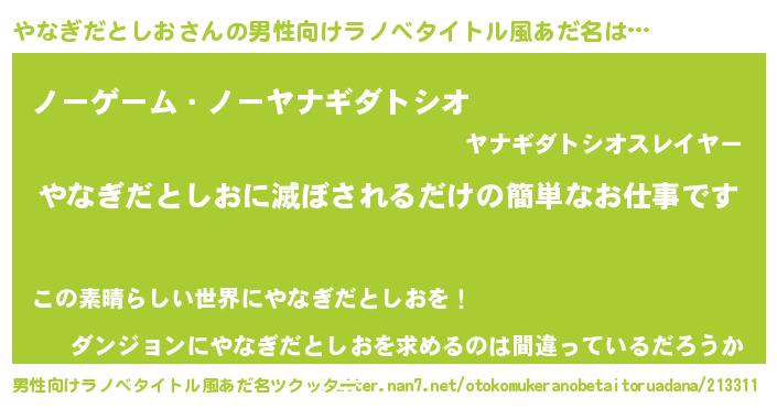 | 意味不明あだ名 | 『眠気覚ましガムやなぎだとしお味』 |
