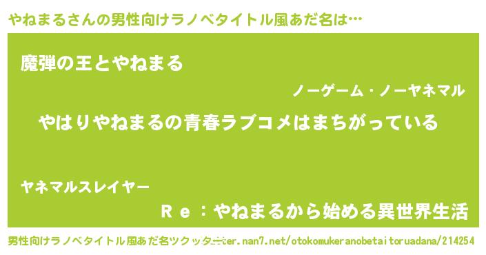 | 意味不明あだ名 | 『やねまるフォーエバー』『自称やねまる』 |