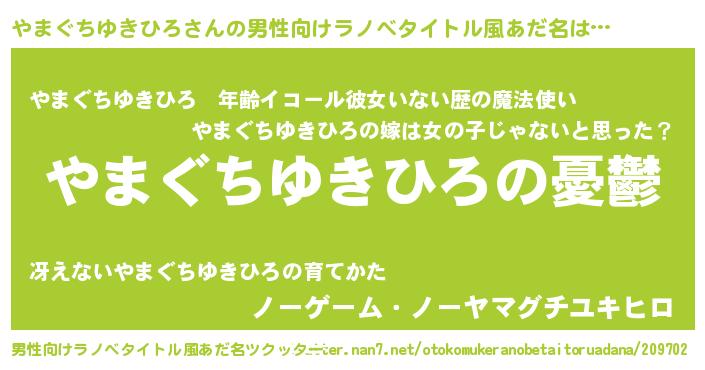 | 胡散臭い通販商品みたいなあだ名 | 『モテモテ間違いなし霊験あらたかなお札…その名も「やまぐちゆきひろ」』 |