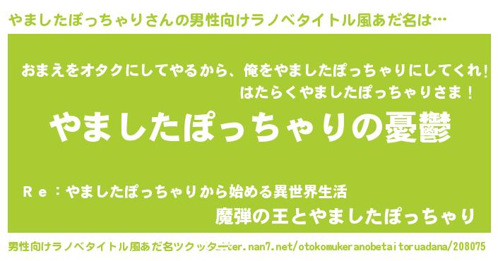 | 女子向けラノベタイトル風あだ名 | 『やましたぽっちゃり姫と円卓の騎士』 |