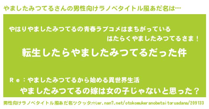 | 女子向けラノベタイトル風あだ名 | 『やましたみつてるの玉の輿計画!』 |