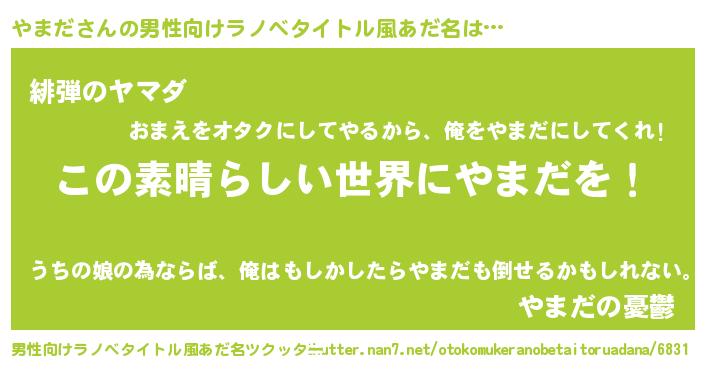 | 意味不明あだ名 | 『住所不定無職やまだ(74歳)』 |