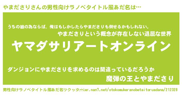 | 女子向けラノベタイトル風あだ名 | 『やまださり姫と円卓の騎士』 |