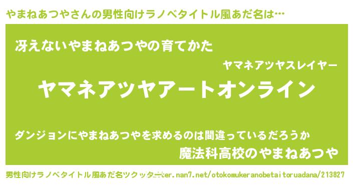 | 胡散臭い通販商品みたいなあだ名 | 『億万長者になれるブレスレット…その名も「やまねあつや」』 |