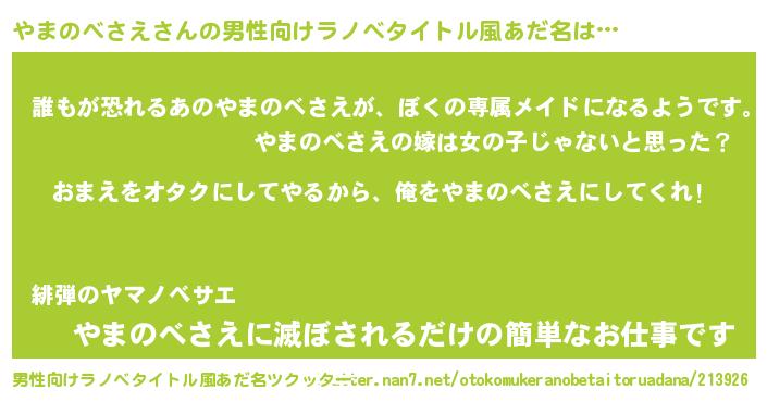 | 女子向けラノベタイトル風あだ名 | 『やまのべさえ夫妻のなれそめ』 |