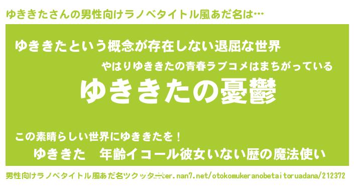 | 女子向けラノベタイトル風あだ名 | 『(仮)ゆききたのやんごとなき事情』 |