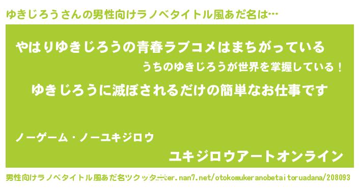 | ファンタジー風あだ名 | 『エターナルユキジロウー』『ユキフェル』 |