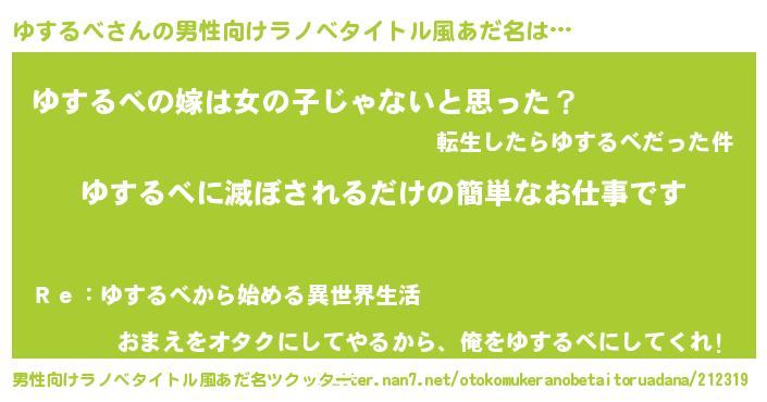 | 胡散臭い通販商品みたいなあだ名 | 『全米が絶賛したサプリメント…その名も「ゆするべ」』 |