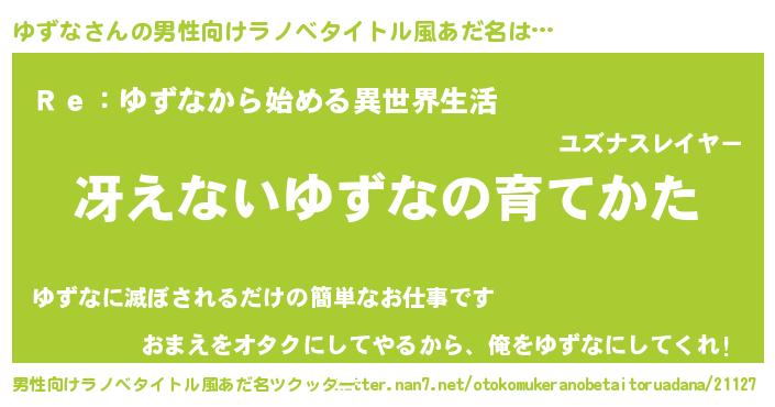 ゆずなさんの男性向けラノベタイトル風あだ名をツクッター!