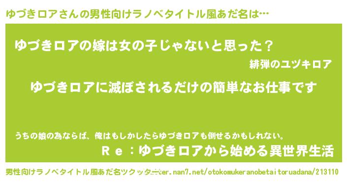 | ヒーロー風カッコイイあだ名 | 『炎刃騎士ユヅ』『最強戦士ユヅキロア』 |