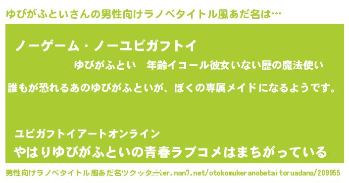 | 胡散臭い通販商品みたいなあだ名 | 『来世でも幸せになれる水素水…その名も「ゆびがふとい」』 |
