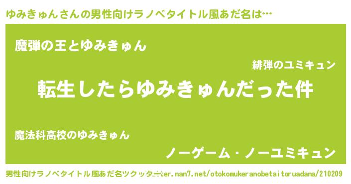 | 胡散臭い通販商品みたいなあだ名 | 『世界中を虜にした世界で10本だけ現存している希少なブランデー…その名も「ゆみきゅん」』 |
