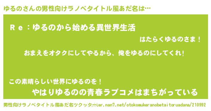 | ヒーロー風カッコイイあだ名 | 『友情の使者ゆるの』『最強戦士ユルノ』 |