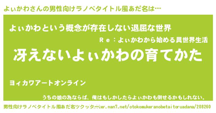 | 意味不明あだ名 | 『永久保存よぃかわ』『自称よぃかわ』 |