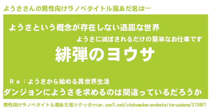 | 意味不明あだ名 | 『永久保存ようさ』『自称ようさ』 |