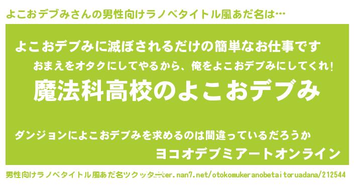 | 女子向けラノベタイトル風あだ名 | 『よこおデブみアンティーク』 |
