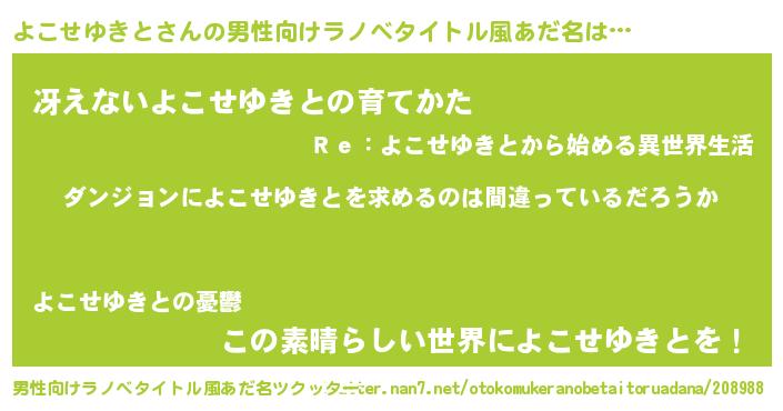 | 女子向けラノベタイトル風あだ名 | 『よこせゆきとは平凡を望む』 |