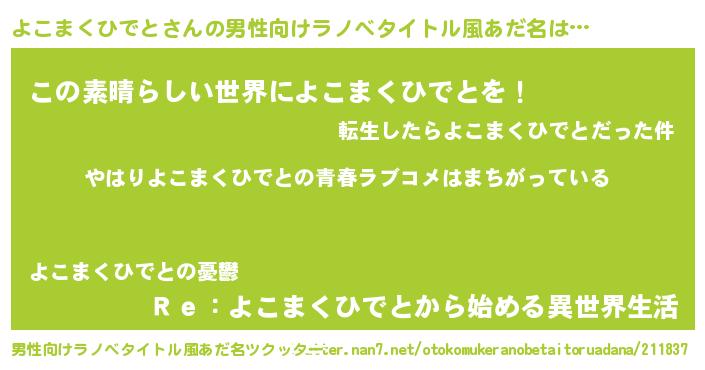 | 女子向けラノベタイトル風あだ名 | 『よこまくひでとの雑貨屋さん』 |