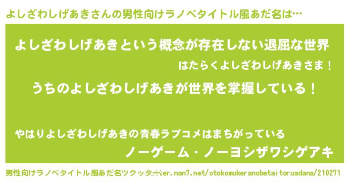 | 意味不明あだ名 | 『永久保存よしざわしげあき』 |