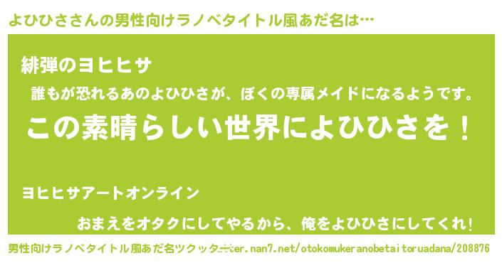 | ヘコむあだ名 | 『よひひさ(爆)』『よひにゅー』 |