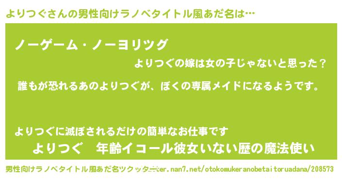 | 胡散臭い通販商品みたいなあだ名 | 『前代未聞の健康食品…その名も「よりつぐ」』 |