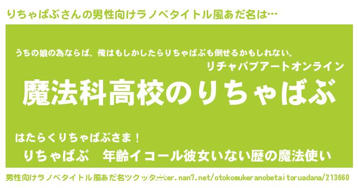 | 意味不明あだ名 | 『自称りちゃばぶ』『ペロリンりちゃばぶ』 |