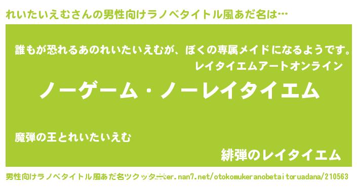 | ヘコむあだ名 | 『れいたいえむ(笑)』『れいもー』 |