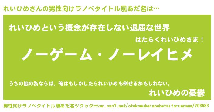 | 伝説のあだ名 | 『救世主となる占い師れいひめ』 |