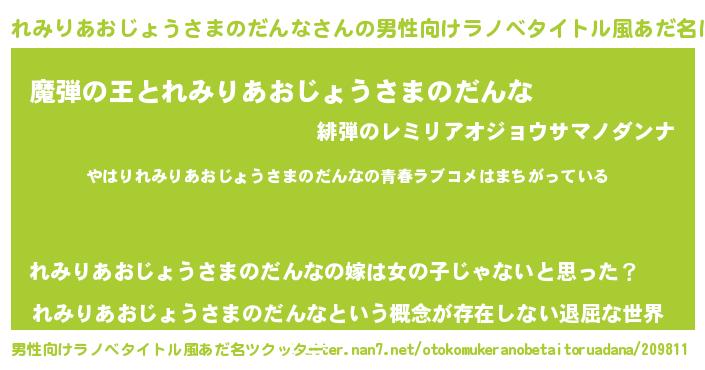| ファンタジー風あだ名 | 『エターナルレミリアオジョウサマノダンナー』 |