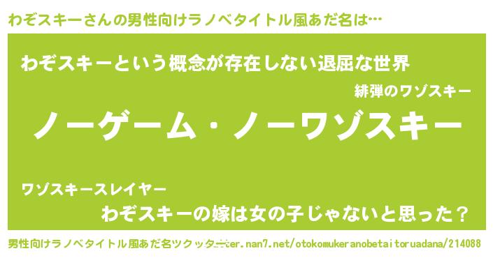 | 女子向けラノベタイトル風あだ名 | 『死神わぞスキーの再婚』 |
