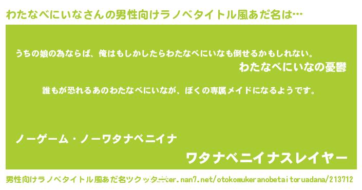 | 女子向けラノベタイトル風あだ名 | 『わたなべにいなの契約王妃』 |