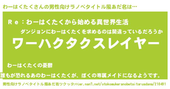 | 料理風あだ名 | 『わーはくたくごはん』 |