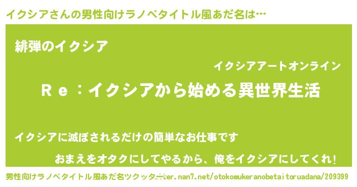 | 意味不明あだ名 | 『自称イクシア』『ペロリンイクシア』 |