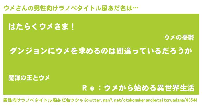 ウメさんの男性向けラノベタイトル風あだ名をツクッター!