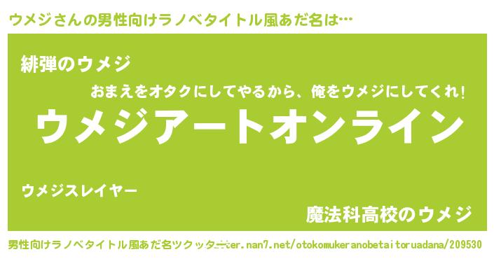 | 女子向けラノベタイトル風あだ名 | 『誰かこのウメジを説明してください! ~契約から始まるウェディング~』 |