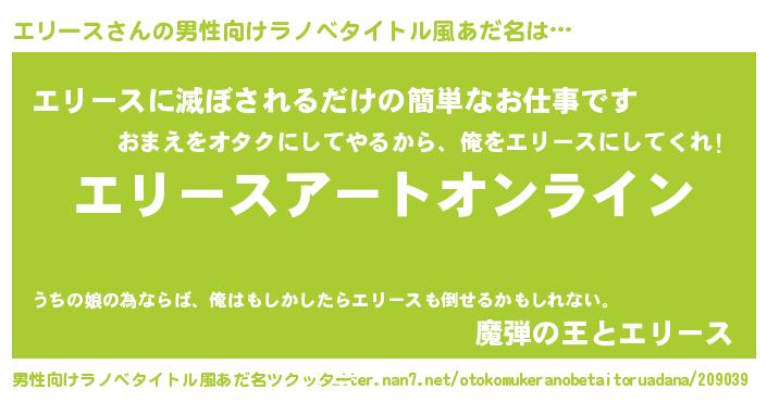 | 女子向けラノベタイトル風あだ名 | 『誰かこのエリースを説明してください! ~契約から始まるウェディング~』 |