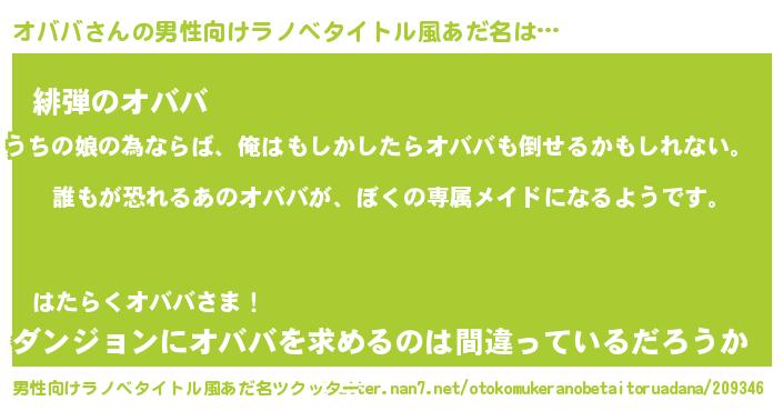 | 女子向けラノベタイトル風あだ名 | 『異世界でカフェオババを開店しました。』 |