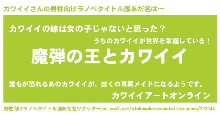 | 胡散臭い通販商品みたいなあだ名 | 『世界中を虜にした100年もののヴィンテージワイン…その名も「カワイイ」』 |