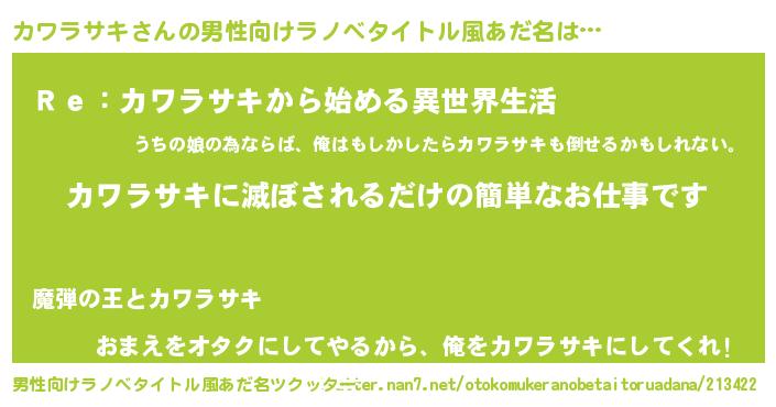| 意味不明あだ名 | 『自称カワラサキ』 |