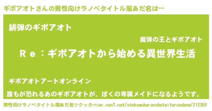 | 女子向けラノベタイトル風あだ名 | 『ギボアオトストレイドッグス』 |