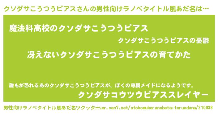 | 女子向けラノベタイトル風あだ名 | 『シンデレラクソダサこうつうピアス家の靴箱館』 |