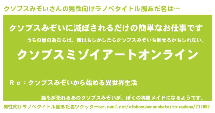 | ヒーロー風カッコイイあだ名 | 『スーパークソブスミゾイ』 |