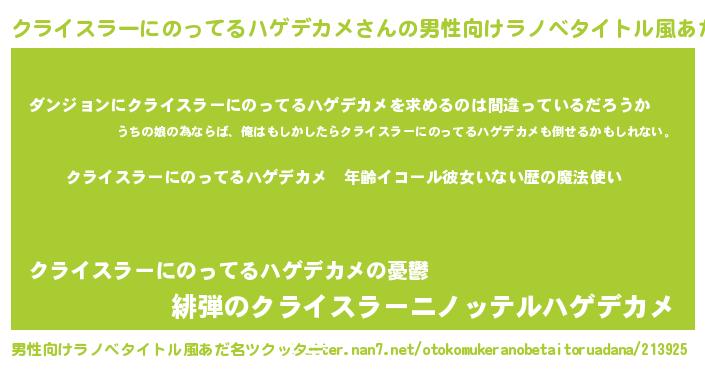 | 女子向けラノベタイトル風あだ名 | 『クライスラーにのってるハゲデカメの玉の輿計画!』 |