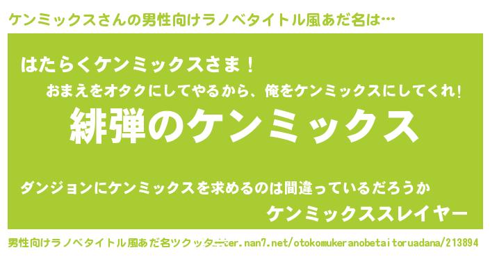 | 女子向けラノベタイトル風あだ名 | 『シンデレラケンミックス家の靴箱館』 |