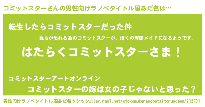| 胡散臭い通販商品みたいなあだ名 | 『信頼と実績のネックレス…その名も「コミットスター」』 |