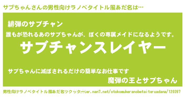 | ヒーロー風カッコイイあだ名 | 『仮面サブダー』『ネオサブチャン』 |