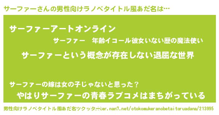 | ヘコむあだ名 | 『サーファー(小並感)』『サーっふぃ~』 |
